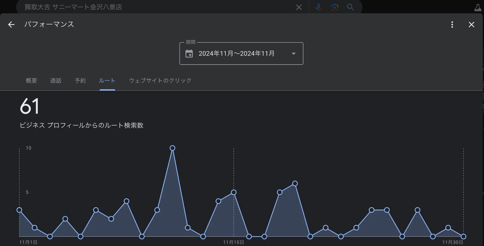 11月実績は本当にGBPのパフォーマンスから見るルート案内も過去最高を更新しておりました‼︎