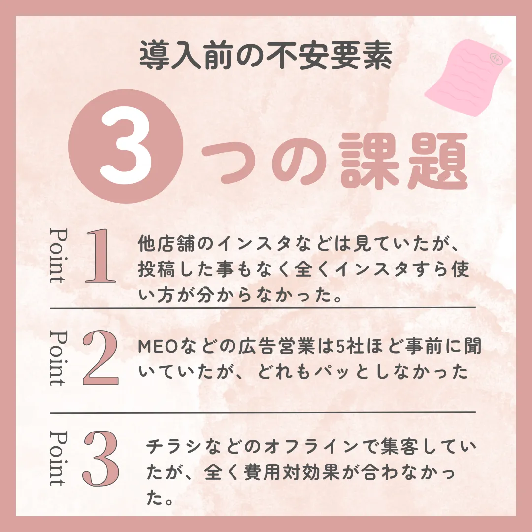 - 他店舗のインスタなどは見ていたが、投稿した事もなく全くインスタすら使い方が分からなかった。