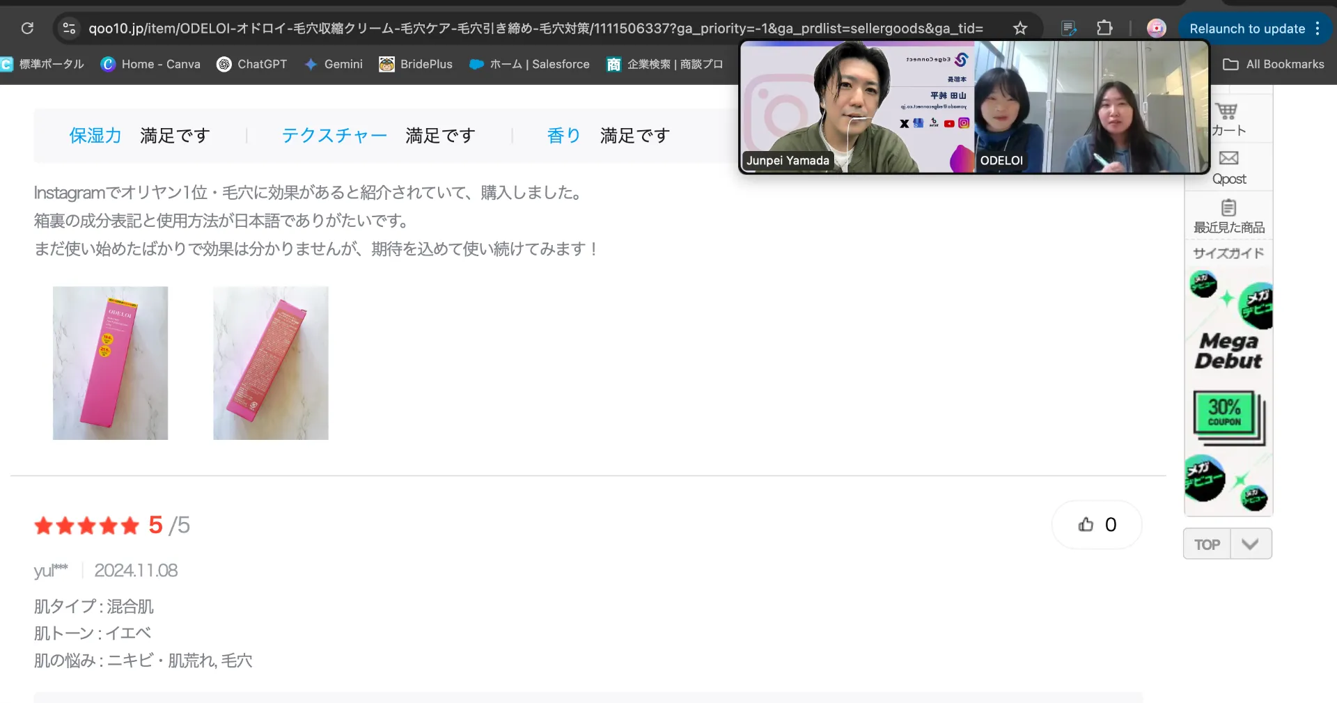 また、導線としてはQ10のメガ割に合わせて、次回のメガ割でODELOIを購入してもらうような導線作りをしてのPR投稿を意識しております。