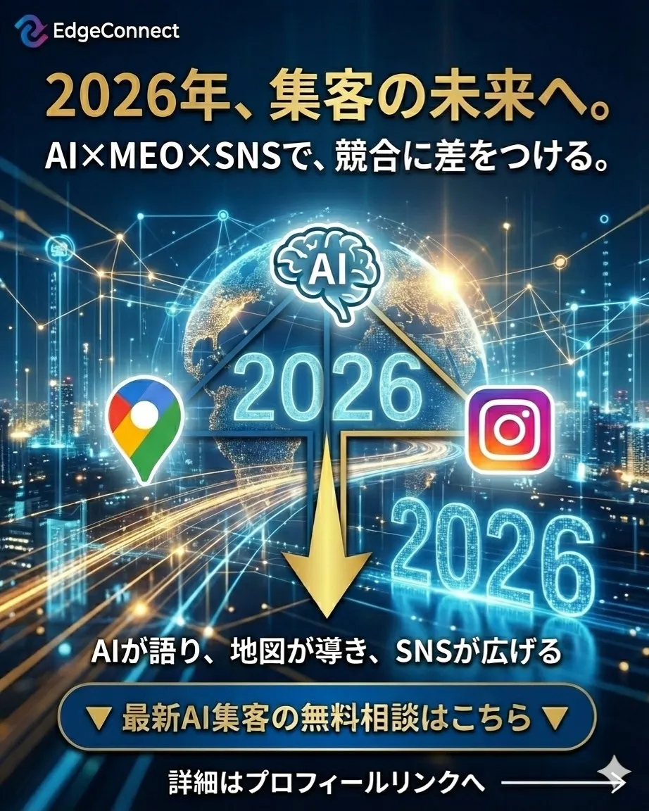 さあ皆様2026年も始まりました!! さあ皆様2026年も始まりました!!今年は集客や売上UPに向けて早い段階から今のトレンドにあった対策を始めませんか?現状の集客、「なんとなく」で止まっていませんか?今、選ばれる店舗は✔AIにおすすめさ…