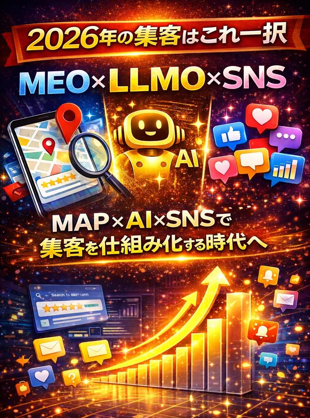 2026年、集客は「これ一択」。 2026年、集客は「これ一択」。MEO×LLMO×SNSこの3つを繋げない限り、あなたの店舗・サービスは「認知されない」=「実在しない店舗」とされる時代の突入です。2026年、マーケティングの常識が完全に変わり…